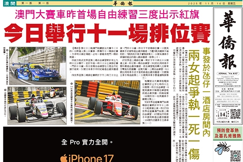 澳門大賽車昨首場自由練習三度出示紅旗…