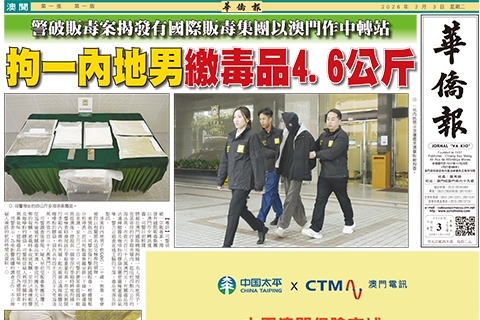 【專訪】司警偵破一宗販毒案,揭發有國際販毒集團以澳門作中轉站運毒。司警日前根據情報在澳門國際機場拘捕一名入境的內地男子,在其寄存的行李箱夾層內,起出近四點六公斤的海洛英,市值六百三十八萬澳門元,有關毒品用沾滿辣椒醬及咖啡粉的膠袋包裹意圖掩蓋毒品氣味。警方正追查在逃主腦的下落、毒品來源及終點站。 涉…