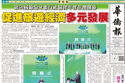 【特訊】第50屆葡萄牙旅行社協會年會(下稱「年會」)昨(2)日在澳門開幕。澳門特別行政區政府再度迎來此年度業界盛事,向葡萄牙旅遊業界展示「世界旅遊休閒中心」的最新發展,彰顯澳門作為國際平台的獨特優勢,助力拓展國際客源市場,促進旅遊經濟多元發展。 開幕式在銀河國際會議中心舉行,由澳門特別行政區政府經…
