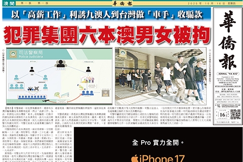 【專訪】司警偵破一宗犯罪集團案件,揭發有台灣詐騙集團在本澳聘用成員,再以「高薪工作」為由,利誘他人到台灣做「車手」收取騙款,行動中拘捕包括兩名骨幹的六名本澳男女。該六人成功利誘九名本澳居民到台灣犯案,該九人最終亦被台灣警方拘捕及判刑。司警正追查人在逃集團主腦的下落以及具體利益。 司警拘捕的六名本澳…