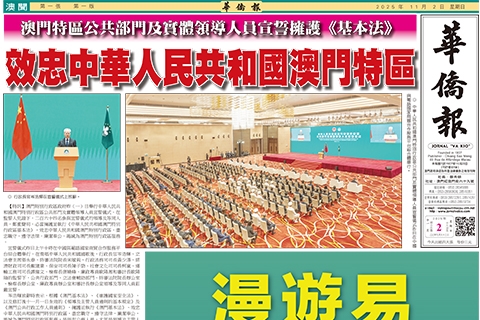 【特訊】澳門特別行政區政府昨(一)日舉行中華人民共和國澳門特別行政區公共部門及實體領導人員宣誓儀式。在監誓人見證下,二百六十四名參與宣誓儀式的領導及等同人員,鄭重聲明,必當擁護並執行《中華人民共和國澳門特別行政區基本法》,效忠中華人民共和國澳門特別行政區,盡忠職守,遵守法律,廉潔奉公,竭誠為澳門特…