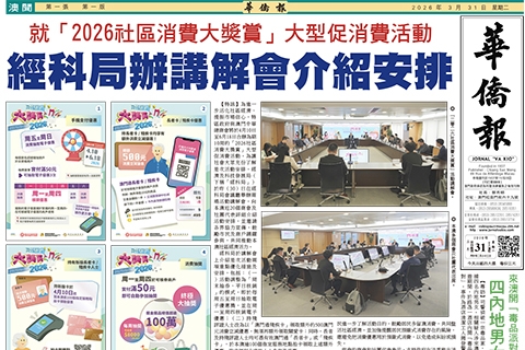 【特訊】為進一步活化社區經濟、提振市場信心,特區政府與澳門中華總商會將於4月10日至6月18日合辦為期10周的「2026社區消費大獎賞」大型促消費活動。為讓社會大眾充份了解是次活動安排,經濟及科技發展局(下稱「經科局」)於昨(30)日在經科局會議廳舉辦兩場活動講解會,向本澳近20個商會及社團代表詳…