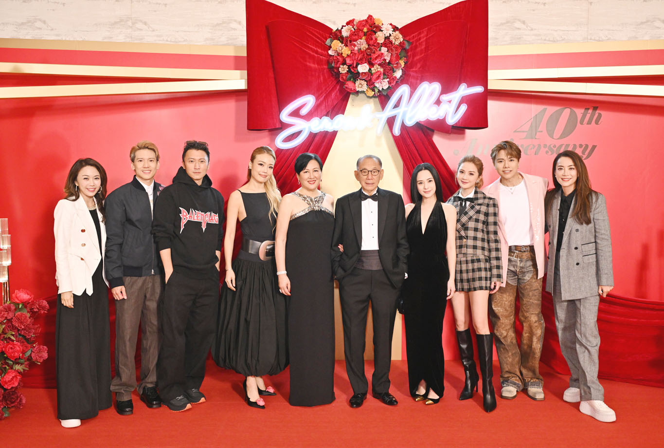 英皇集團主席楊受成伉儷24日於香港瑞吉酒店舉辦「40周年紅寶石婚晚宴」,筵開超過20席招待政商娛樂界名人好友以及英皇集團同事一起慶祝。子女及一眾兒孫均有出席,逾300位名人紅星雲集,包括馬時亨、林建岳、劉鑾雄與甘比、劉鑾鴻、邱達昌、蔡志明、陳國强、容永褀、梁安琪、石禮謙、劉業強、林健鋒、胡定旭、謝偉銓、田北辰、林偉強、向華强夫婦、俞琤、樂易玲、許冠文、黃子華、岑建勳、陳欣健、呂良偉、拉姑及導演陳茂賢等(排名不分先後)。此外,謝霆鋒、容祖兒、蔡卓妍、鍾欣潼、張敬軒、關智斌、李幸倪、任達華、方中信、歐陽震華、毛舜筠、衛詩雅、陳家樂、周家怡等(排名不分先後)連同一眾英皇娛樂藝人紛紛拉大隊到場支持。