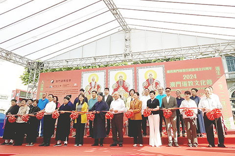 開幕式下午三時舉行,何厚鏵、中聯辦協調部部長仇昱、廣東省民族宗教事務委員會副主任曾曉暉、中國道教協會副會長董中基等主禮。澳門道教協會會長吳炳鋕致詞表示,該會向以推廣道教文化為己任,並充份利用澳門這「以中華文化為主流,多元文化共存的交流合作基地」,多維度弘揚道教這一中華優秀傳統文化。十多年來持續開辦道教文化班、道教科儀班及道教音樂學習班,吸納了許多年輕人及中、小學生,參加法務團及道樂團,肩負起傳承道教文化及本土音樂的責任,亦讓其更富有朝氣和活力,讓薪傳之火不斷持續下去。◇
