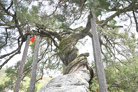 ◎ 四月八日,千年圓柏枝葉繁茂。位於浙江杭州臨安的一株圓柏種植于西漢末期,樹齡約二0一五年,樹高八米,胸圍一點九八米,平均冠幅五米,造型獨特,樹幹到樹梢呈螺旋狀。近年來當地林業部門每年為其「體檢」,目前古樹生長勢逐步向好發展,樹體腐爛趨勢得到有效遏制。(中新社)