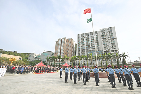 酒會前,特區政府在早上八時於金蓮花廣場舉行隆重的國慶日升旗儀式,行政長官、中央人民政府駐澳機構負責人、澳門特區立法及司法機關負責人、行政會委員、立法會議員、特區政府官員、澳區人大代表、政協委員等約六百六十人出席。◇