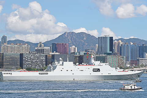 【香港中通社十月三日電】(香港中通社記者張明臻)十月三日上午,中國海軍戚繼光艦、沂蒙山艦犁開維港碧波,在兩岸市民的歡呼聲與手中揮舞的國旗下緩緩駛離。艦行碧海,人立兩岸,嘹亮的軍艦響號在維港上空回蕩,與香江道別。