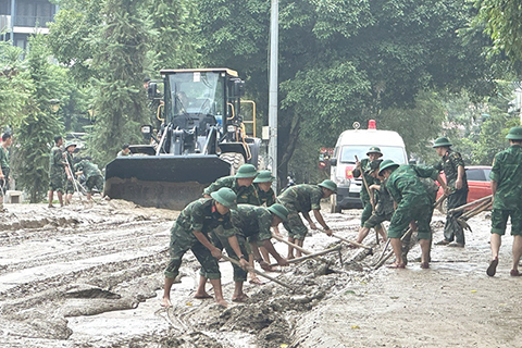 ◎ 越南農業與環境部十月三日說,截至當天六時,台風「博羅依」在越南已造成五十一人死亡、一百六十四人受傷、十四人失蹤。越通社報道說,台風「博羅依」登陸越南後引發山洪、山體滑坡、龍捲風等後續災害,在越南北部和中北部造成極其嚴重的損失,對生產經營活動和人民生活造成極大影響。圖為當日,在越南宣光省,工作人員開展災後清理工作。(新華社/越通社)