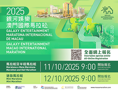 【特訊】由體育局、銀河娛樂集團及澳門田徑總會主辦的「2025銀河娛樂澳門國際馬拉松」將於本年12月7日(周日)舉行。馬拉松及半程馬拉松項目將於10月11日(周六)上午9時開始接受報名,而迷你馬拉松的報名將於10月12日(周日)上午9時開始。各項目報名名額為:馬拉松1,800名,半程馬拉松4,800名,迷你馬拉松5,400名。名額有限,報滿即止。