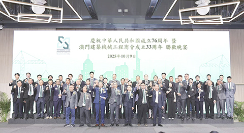 診會蕭東文致詞時首先回顧了該會三十三年來的歷程。他稱,在歷屆會長及理監事團隊的共同努力下,會務不斷拓展,企業會員由最初的三十五間公司,發展至今達到一百一十八間,行業影響力持續提升,贏得了社會各界的廣泛認同。會方連續多年協助勞工事務局設立本地建築機械的培訓課程,並積極參與各項社會公益活動等。以及發揮擁有各類大型建築機械優勢,在本澳多次遭遇風災、水災等災害之時,配合政府進行搶險救災及災後清理等,盡力貢獻社會丶回饋社會。他感謝政府部門多年來在工程建設、道路鋪設、人力資源、海事協調、環境保護等各方面提供的專業支持與配合,為業界創造了良好的發展環境。同時,他也向中央駐澳機構丶澳門立法會、金融機構等有關部門丶社會政要的關心丶支持表示感謝。
