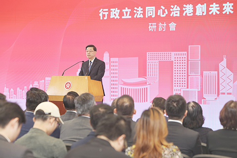 【香港中通社十月十六日電】(記者徐嘉儀)香港特區行政長官李家超十六日在「行政立法同心治港創未來」研討會上致辭時,列舉近年多項行政立法良性互動成果,指今屆立法會的議政質量高,效率亦高。他深信,新一屆立法會議員必將深入社區和界別,了解民意、洞悉民情,積極建言,助力特區政府帶領香港深化改革,心繫民生,發展經濟,同創未來。