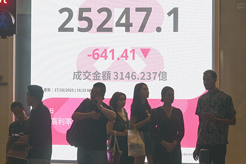 【香港中通社10月17日電】(記者 梁嘉軒)美國地區銀行信貸風險升溫,引起環球市場憂慮,港股17日受壓。恆生指數全日收25247點,跌641點或2.5%。金價上升至黃金零售暢旺,金飾股造好。全星期計,恆指累計跌逾1040點,跌幅近4%,連跌兩星期。