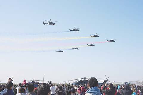 「飛行表演的動作都是引自我們的日常飛行訓練。」牛超舉例說,直升機在空中釋放干擾彈,帶來炫酷的視覺呈現;而在實際任務中,直升機打出干擾彈是為了躲避熱源制導武器鎖定。「我們要訓練的是在甚麼時機、甚麼高度打彈,都是有相關的教學規範和嚴格要求的。」