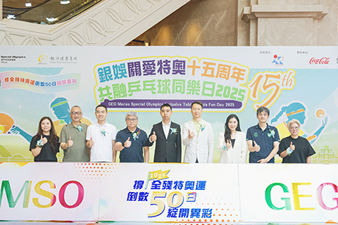 【特訊】由銀河娛樂集團(以下簡稱「銀娛」)冠名贊助、澳門特殊奧運會(以下簡稱「特奧會」)合辦的「銀娛關愛特奧共融乒乓球同樂日2025」,於昨(19)日在「澳門百老匯」舉行。活動當天為距離將於粵港澳大灣區舉辦的「全國第十二屆殘疾人運動會暨第九屆特殊奧林匹克運動會」(以下簡稱「全國殘特奧運會」)倒數50天,吸引逾百名參加者踴躍參與,共同為「全國殘特奧運會」預熱。