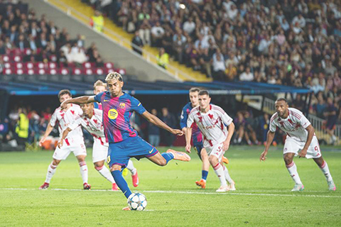【特訊】歐洲聯賽冠軍盃,巴塞昨晨主場以6:1擊敗下半場十人應戰的奧林比亞高斯,費明盧比斯上演帽子戲法,拉舒福特梅開二度,耶馬亦攻入一球十二碼。