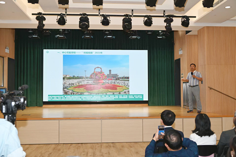 北京插花研究會會長丶「傳統插花」項目代表性傳承人楊青作了「『傳統插花』保護實踐」的專題演講。其後,中國插花花藝協會常務理事李海波分享天安門大花籃的歷史與製作的演進與感受。