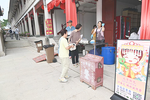 適逢九月初九重陽節與媽祖升天日同日,媽祖文化村迎來眾多頂禮膜拜的澳門居民和旅客。澳門「汘海記素食」在現場向膜拜信眾免費派發齋炒飯丶炒麵各五百份丶二百份,為弘揚媽祖信仰文化共襄善舉。