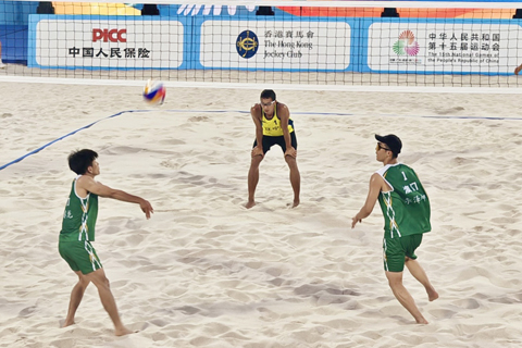 【特訊】中華人民共和國第十五屆運動會沙灘排球項目週五(31日)在香港登場,澳門沙排男、女子代表隊首日在小組賽攜手亮相,但雙雙以直落兩局告負。