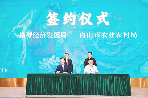隨後,來自吉林省、橫琴的領導共同為「白山-橫琴」人參文化周啟幕。在現場嘉賓見證下,深合區經濟發展局局長吳創偉與白山市農業農村局局長李樹軍簽署框架協議,將為長白山人參搭建通往港澳及海外市場的便捷橋樑。