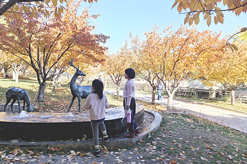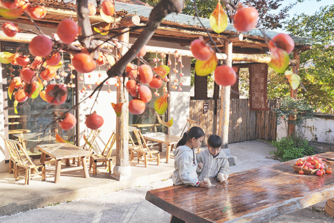 ◎ 十一月二日,小朋友在山東青島東麥窑村的「仙居嶗山」主題民宿內遊玩。東麥窑村緊鄰青島嶗山風景區,依山傍海,風景宜人。近年來,該村積極發展旅遊服務業,創建二十餘個民宿品牌,開設鄉村研學基地,年接待遊客量十萬人次,百餘村民在家門口實現就業。(中新社記者 張祥毅 攝)