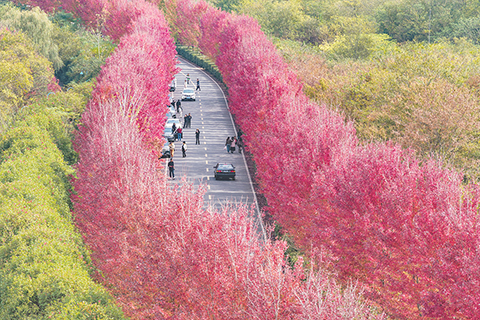 ◎ 丹江口水庫是南水北調中線工程核心水源地。深秋時節的丹江口水庫如一塊碧綠翡翠鑲嵌於漢江與丹江交匯處。水庫沿岸的不少村鎮的田間地頭,民眾忙碌著採收、售賣柑橘、獼猴桃等水果。在位於湖北丹江口市的北京一輕食品(丹江口)產業園裡,HPP柑橘汁生產線同樣忙碌,來自庫區生態果園柑橘經過超高壓處理,變身帶著鮮果清香果汁。丹江口水庫不僅滋養著民眾,更催生出一個以水為核、全鏈發展的百億級特色產業集群。丹江口水庫給民眾帶來了安居的美好生活,而民眾也用行動守護這「一庫清水」。圖為十月二十二日,小朋友在漢水文化公園打卡拍照。(中新社記者 駱雲飛 攝)