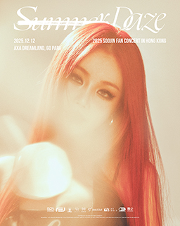 韓國藝人Soojin(徐穗珍)宣布,將於2025年12月12日晚上8時假香港AXA Dreamland(西沙GoPark)舉辦《2025 SOOJIN FAN CONCERT'RE:SUMMER DAZE' IN HONG KONG》粉絲演唱會。此次演唱會主題「RE:SUMMER DAZE」寓意「重溫夏日時光」,希望在2025年末用音樂為粉絲注入溫暖與活力,帶領觀眾進入一個專屬的夏日夢境。