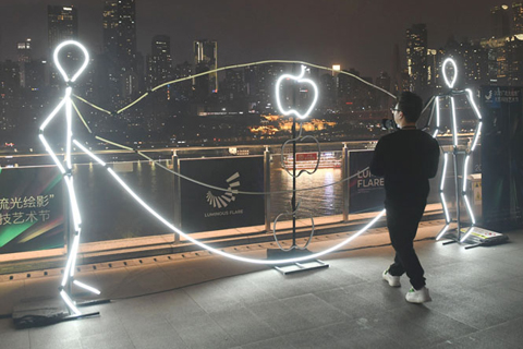 光影的視覺盛宴!二0二五「流光繪影」光影科技藝術節8日啟幕 長春「00後」漢服愛好者任鴻洋 中國城市國際傳播影響力 香港、北京及上海居前三 台灣第三季網路詐騙廣告 假求職及假活動佔逾六成 跨越海峽尋根 台張氏宗親於晉祠祭拜先祖 從礦場到片場 黔朱砂古鎮「出鏡」又「出圈」 光影的視覺盛宴!二0二五「流光繪影」光影科技藝術節8日啟幕 2025-11-10 03:31:00 ◎ 十一月八日晚,二0二五「流光繪影」光影科技藝術節在重慶開埠遺址公園開幕,吸引民眾前往參觀。據悉,本屆光影科技藝術節持續以「流光繪影、藝術讓生活更美好」為主題,展現了光影科技藝術與城市文化深度交融的獨特魅力。圖為科技藝術裝置《甩大繩Ⅱ》吸引參觀者眼球。(中新社記者周毅 攝)