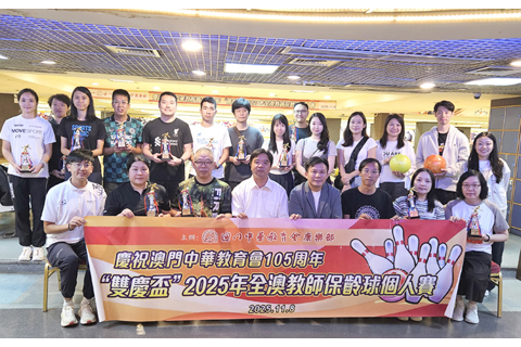 【特訊】澳門中華教育會主辦,慶祝中華教育會成立105周年「會慶盃」2025年全澳教師保齡球個人賽,日前下午在佳景樂園保齡球場舉行。有四三十位教師報名參加,比賽選手施展渾身解數,屢次出現全中,引來旁觀者陣陣歡呼。氣氛熱鬧。
