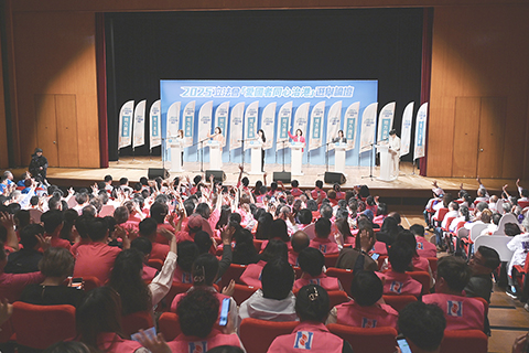 進入提問環節,主持人向候選人提問關於建設香港成為專上教育樞紐的建議,以及如何優化房屋政策。每位候選人做足功課,結合自身政綱主軸,對答如流。兩分鐘時間作答完畢後,現場設三十秒助選團打氣。