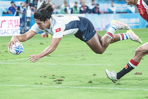 七人橄欖球起源於英國,是英式橄欖球的一種。與傳統橄欖球相比,場地、規則一致,但比賽節奏更快、得分更高,賽事分上、下半場,各九分鐘,觀賞性更強,因而廣受歡迎。
