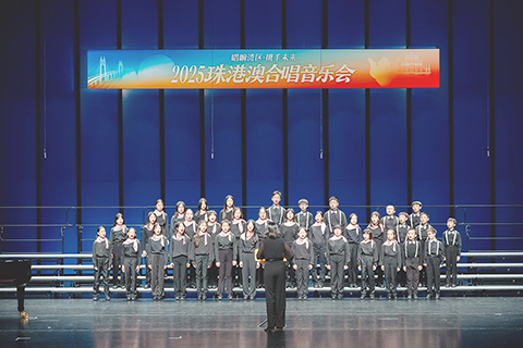 文化局轄下澳門演藝學院澳門少年合唱團11月2日前往珠海參加「唱響灣區.攜手未來」2025珠港澳合唱音樂會,與來自珠海、香港兩地的優秀合唱團約三百位青少年同台演出,共同展現大灣區青少年的藝術才華和精神風貌。