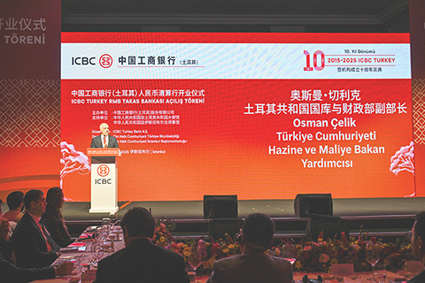 土耳其人民幣清算行業務正式啟動 2025-11-19 03:30:00 ◎ 中國工商銀行土耳其人民幣清算行11月17日在伊斯坦布爾舉行開業儀式,標誌著土耳其人民幣清算行業務正式啟動。此舉將助力雙邊經貿與金融協作升級,促進兩國貿易投資便利化。圖為當日,土耳其財政部副部長奧斯曼•切利克在伊斯坦布爾舉行的中國工商銀行土耳其人民幣清算行開業儀式上致辭。(新華社記者 劉磊攝)