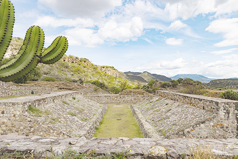 米特拉遺址和亞古爾遺址位於墨西哥瓦哈卡州的中央谷地,距離瓦哈卡市約四十公里。二0一0年,它們與附近的史前洞穴一起,被列入聯合國教科文組織的《世界遺產名錄》。米特拉遺址是原住民薩波特克文明的重要宗教中心,以獨特的幾何石材拼嵌裝飾和殿堂式建築群聞名,被視為墨西哥前哥倫布時期最精美的遺跡之一。亞古爾遺址則保存有大型球場、宮殿區和多處建築遺跡,具有極高的考古價值。(新華社記者李夢馨 攝)