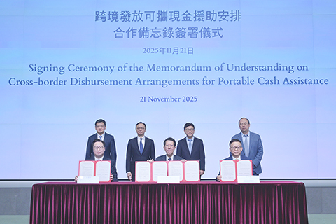 【中新社香港十一月二十一日電】香港特區政府社會福利署(簡稱「社署」)二十一日分別與中國銀行(香港)有限公司(簡稱「中銀香港」)和中國工商銀行(亞洲)簽署合作備忘錄,確立合作推展跨境發放可攜現金援助的安排。