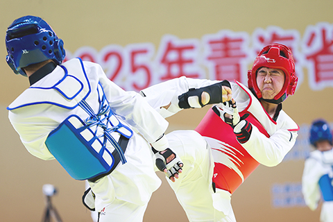 ◎ 十一月二十二日,青海西寧,二0二五年青海省跆拳道錦標賽開賽。(中新社記者 薛蒂 攝)