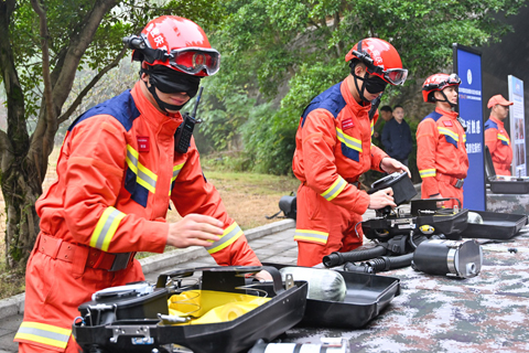 ◎ 十一月二十五日,重慶應急救援隊員展示蒙眼組裝救援裝備。當日,二0二五年重慶市應急救援大比武大練兵決賽暨「巴渝工匠」杯重慶市第二屆應急救援行業職業技能競賽在位於巴南區的中國安能重慶分公司駐地開賽。現場,重慶應急救援隊員展示燈泡上精準切割鐵絲、液壓剪擴鉗夾乒乓球等應急絕活,這些看似炫技的操練,實則是為了在真實救援中實現精準施救的關鍵技能。(中新社記者何蓬磊 攝)