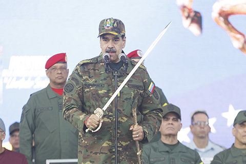 ◎ 委內瑞拉總統馬杜羅十一月二十五日說,由於美國軍事威脅,委內瑞拉正面臨國家存亡的「決定性時刻」。馬杜羅當天在委首都加拉加斯的一場遊行活動中表示,美方在加勒比海的軍事部署是「帝國主義的威脅和攻擊」。面對當前形勢,委內瑞拉人民、軍隊和警察需團結起來,鼓舞士氣,抵禦外部威脅,「如果祖國需要,我們將為祖國獻出生命」。圖為當日,委內瑞拉總統馬杜羅在加拉加斯舉行的遊行活動上發表講話。(新華社發)