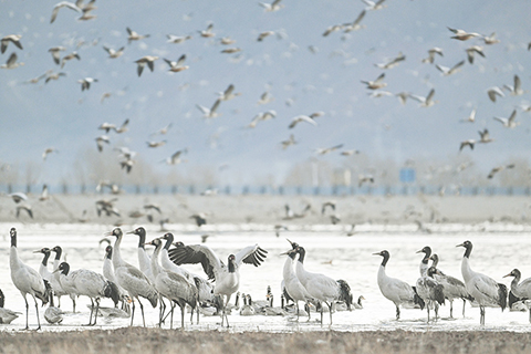 ◎ 近日,隨著華北地區氣溫降低,煤炭運輸需求日漸攀升。中國鐵路北京局集團有限公司唐山供電段出動百餘名檢修人員在唐山市曹妃甸地區對遷曹鐵路開展接觸網全面檢查及專項整治作業,保障這條北煤南運重要能源通道的牽引供電設備運行安全。圖為十一月二十六日拍攝的檢修現場。(中新社記者賈天勇 攝)