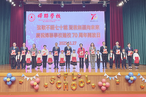 【專訪】昨日上午,婦聯學校於黑沙環校區隆重舉行建校七十周年校慶開放日活動。校董會主席賀定一、教育及青年發展局副局長黃嘉祺、中聯辦教青部處長程啟銀等嘉賓,連同姐妹學校代表、校友、師生及家長逾百人齊聚禮堂,共慶婦聯學校七十周年。