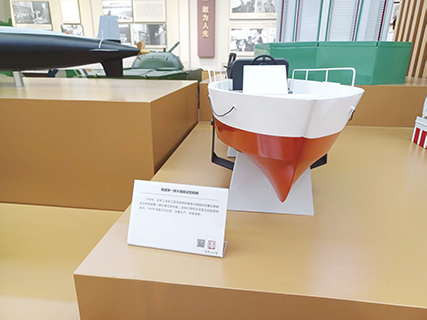 展區內陳列了中國第一艘水翼艇,第一台艦載電腦等原型或模型,展現了哈軍工能在艱苦條件下能自主創新科技。