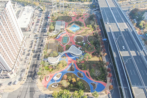 ◎ 十一月廿九日,江西贛州蓉江新區,航拍玉蘭路口「口袋體育公園」。二零二五年,贛州市把「口袋體育公園」建設列為十大民生實事之一,見縫插針在小區周邊、街頭巷尾建設「口袋體育公園」,預計二零二五年底完成一百三十個「口袋體育公園」項目,讓民眾在家門口實現「運動自由」。(無人機照片)(中新社記者劉力鑫 攝)