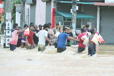 ◎ 斯里蘭卡總統迪薩納亞克十一月二十九日宣佈,因全國多地連日遭遇極端天氣,斯里蘭卡二十八日起進入公共緊急狀態。受熱帶氣旋「迪特瓦」影響,連日暴雨導致斯里蘭卡多地發生洪水、山體滑坡等災害。根據斯里蘭卡災害管理中心通報,截至二十九日上午,極端天氣已導致全國一百二十二人死亡、一百三十人失蹤,超過三十七萬人受災。圖為當日,在斯里蘭卡首都科倫坡郊區,當地居民在遭受洪水侵襲的街道上運送物資。(新華社發 阿吉特.佩雷拉 攝)