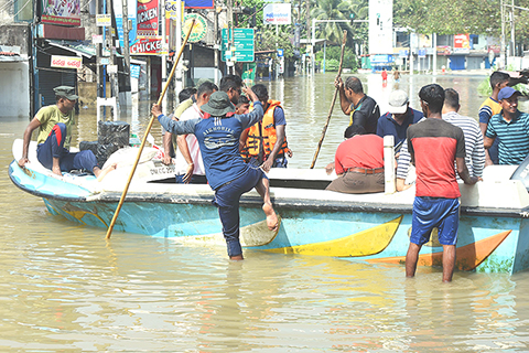 ◎ 斯里蘭卡災害管理中心十二月二日通報說,截至當天上午,熱帶氣旋「迪特瓦」造成的極端天氣已導致該國四百一十人死亡、至少三百三十六人失蹤、超一百四十七萬人受災。圖為一日,在斯里蘭卡首都科倫坡郊區,救援人員將受洪澇影響的民眾轉移至安全地點。(新華社發 加揚.薩米拉 攝)