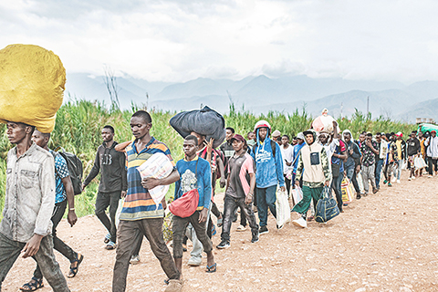 ◎ 聯合國兒童基金會十二月十四日發佈公報說,自十二月一日以來,剛果(金)東部的南基伍省衝突升級,已造成逾五十萬人流離失所,其中包括超過十萬名兒童。圖為當日在剛果(金)東部南基伍省烏維拉附近拍攝的流離失所者。(新華社發 扎內姆.內蒂.扎伊迪 攝)