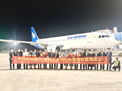 12月23日19時許,老撾航空QV863航班平穩降落湛江吳川國際機場,並緩緩通過象徵民航最高禮儀的「水門禮」,標誌著中國湛江至老撾萬象的國際航線正式開通。