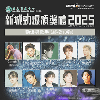 「新城知訊台」主辦、「理文商業中心」冠名贊助,一年一度的樂壇盛事《新城勁爆頒獎禮2025》即將於12月27日下午三時假灣仔香港會議展覽中心舉行。由新城廣播有限公司主辦、「理文商業中心」冠名贊助。今年八大獎項的公開投票已全面截止,其中備受關注的「勁爆男、女歌手」獎項,經網民及音統會投票,終極十強名單今日正式揭曉。(截至2025年12月21日23:59,排名以英文字母及姓氏筆劃序)