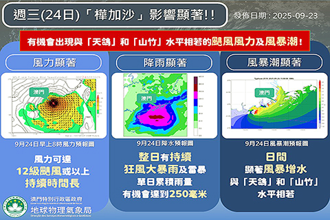 九月廿三日,「風王」「樺加沙」正面吹襲本澳,氣象局在廿三日下午5時發出8號風球,廿四日凌晨4時發出9號風球、緊接清晨5:30分發出10號風球,一直維持到廿四日下午4點,再轉發8號風球,並一直維持到晚11時再改發3號風球。
