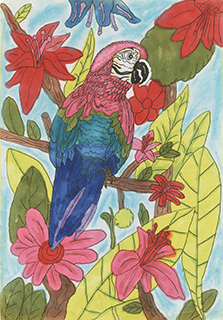 「嘩啦啦~」流水的聲音飄進我的耳中,我一天的疲勞消失得無影無蹤。我仰望那一望無際的天空,蔚藍之中染上了絲絲綠色,如同絲帶般漂亮。一座木製的看上去有些年份的小樓旁邊有條不大也不小的瀑布,岩石如同水龍的守護者靜靜地因水流變得圓滑。我看著遠方藍雲飄過、蒼松挺立、嬌花搖曳⋯⋯這一切都是這麼的美好!由小徑轉回大路,我看到一塊木塊寫着「祝你幸福」,我彷彿被母親摟着那般溫暖,我的心也更加愉悅。