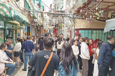 大三巴一帶人頭湧湧 帶動商戶生意額上升