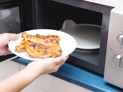 7.生肉︰用微波爐加熱生肉,最大的問題在於加熱不均勻,讓整塊肉無法完全受熱,可能有些部份熟了,有些部分卻沒熟。建議用烤箱較能確保肉完全熟。